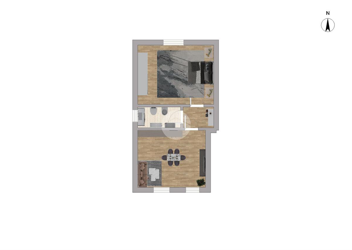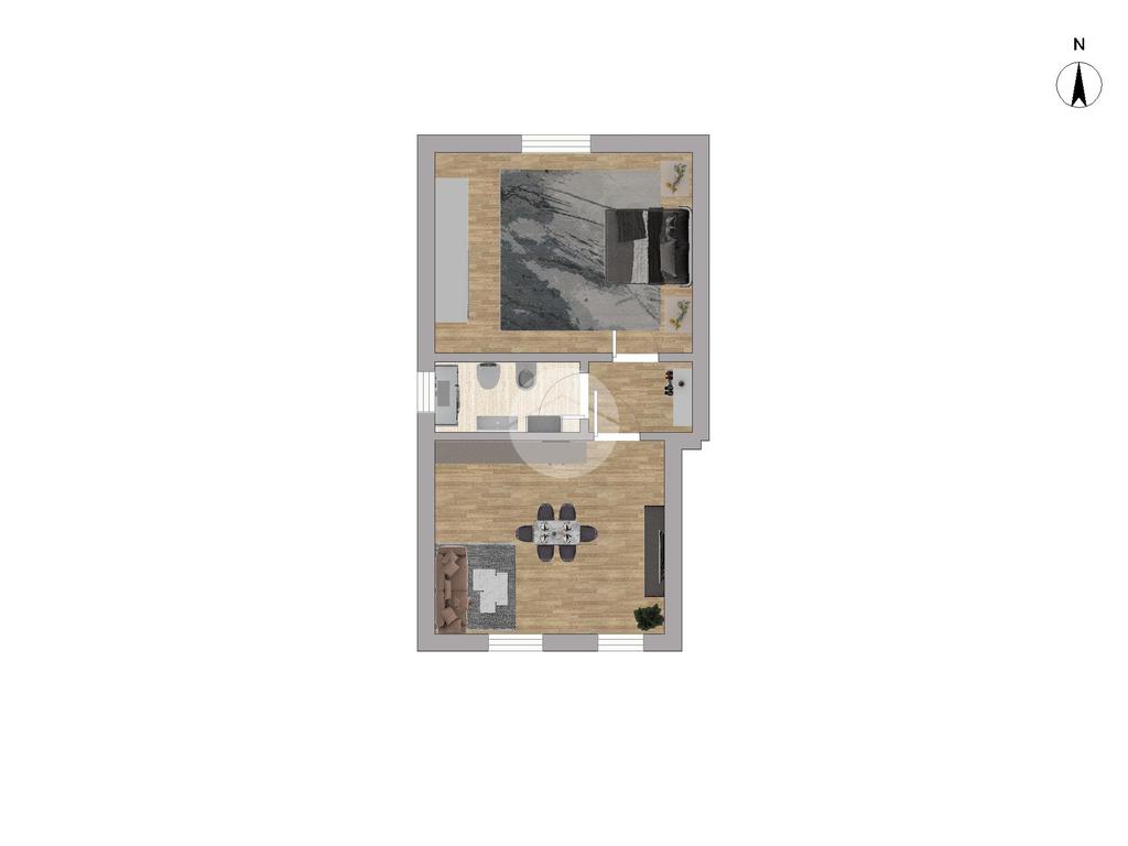 Composto da ingresso diretto sulla zona living con cucina abitabile dotato di aria condizionata, spaziosa camera da letto climatizzata, bagno finestrato e infine un pratico ripostiglio aperto, perfetto come spazio aggiuntivo per organizzare oggetti e accessori della casa.